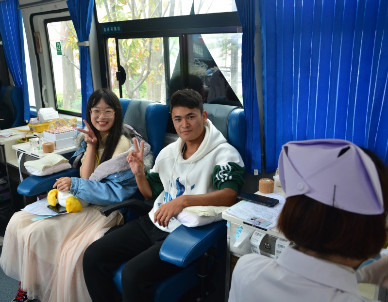 等待献血期间,同学们紧张而兴奋,其中不乏已然参加过献血活动的同学,公司一位大一新生在献血过程中表示:“能够献血救人,感到十分光荣。”辅导员樊琬老师协家人也参与到献血队伍中,并亲切的与公司员工进行交流,安抚他们紧张的情绪,用行动表达了对此次活动的支持。