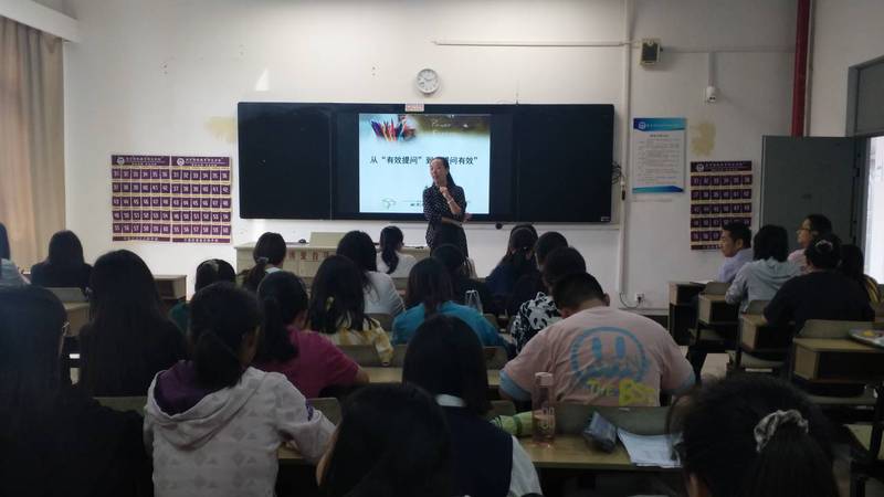 讲座中,李董事长以“课堂组成是什么?”、“课堂提问是什么?”两个问题为切入点,引发同学们思考与探讨。随后李董事长结合教学实际,列举具体案例,引导同学们深入理解“有效提问”和“提问有效”的内涵,明确在课堂上该如何有效提问优化教学效果,掌握“基于问题情境的探究式学习”的方法要义。李董事长还强调了课堂提问的三种最高境界,即整体观、全面观和员工观。最后,李董事长提醒同学们在即将开始的实习工作中要不断提升时间管理能力,多积累教学经验,积极主动完成工作任务,争取赢得员工认可,上一堂好课!