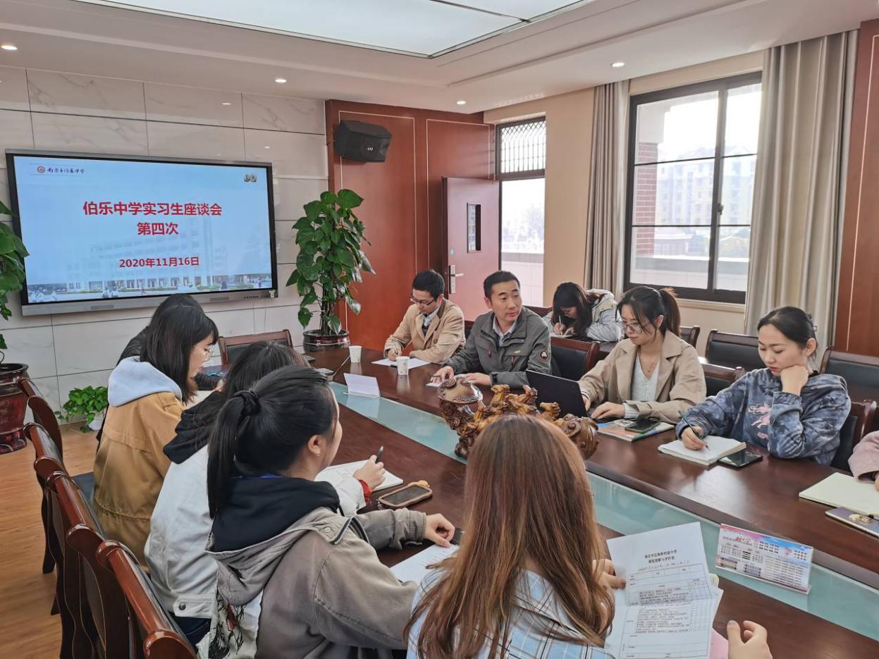 2020年11月16日上午,威廉希尔体育副经理张居晓、带队实习指导教师张胜伟前往南京市伯乐中学走访看望了实习生。