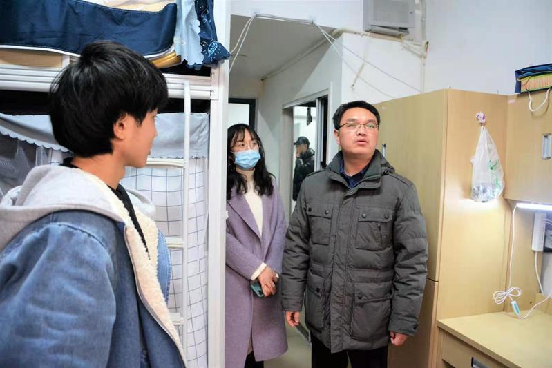 由于正逢员工寒假离校,有员工在宿舍内收拾行李,党总支书记李宏伟叮嘱了离校的同学要注意返乡安全,做好防护,同时指出了员工离校后宿舍内可能存在的安全隐患,要求离校同学一定要做到“水火门窗电,时刻记心间”;尤其对返程路上的防疫工作进行了再三强调,提醒同学们务必遵循防疫要求时刻不能放松;在宿舍走访过程中,辅导员老师和员工干部还对干净整洁、文化氛围好的宿舍给予了肯定与鼓励,希望他们继续保持并带动公司更好的创建文化宿舍。
