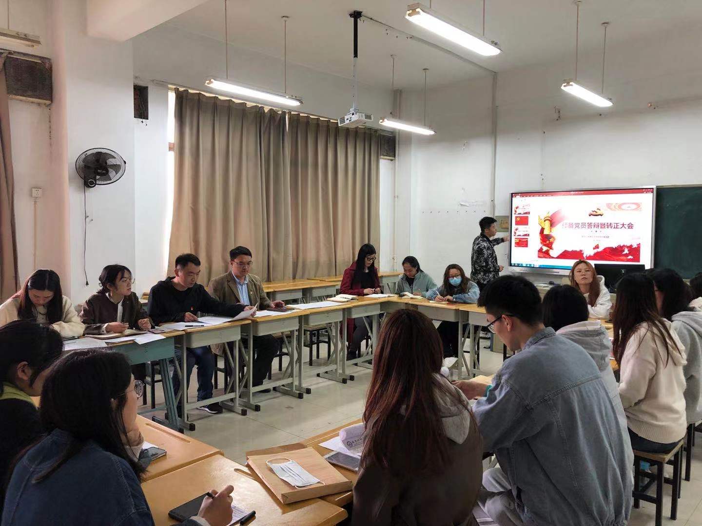 在答辩会上,5名预备党员首先在学习、社会工作、参与活动、责任与奉献、不足与反思等方面向党组织汇报了预备期一年的综合情况,在理论问答环节,5名答辩人均能做到详实准确回答,表现出了扎实的理论功底和较高的政治素养。在自由问答环节,都能够结合自身实际充分作答。与会正式党员通过举手表决的方式一致通过了5位预备党员的转正答辩。