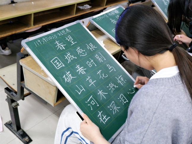 比赛过程中,同学们布局谋篇、认真书写,通过撰写中华优秀传统文化的红色经典诗文歌颂了建党百年光辉的历程和社会主义建设的伟大成就。