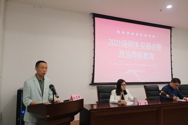 为增进师生的相互了解,帮助和引导新生更好地融入老员工活。10月15日下午,威廉希尔体育于实训大楼301举行师生见面会暨政治导航教育。公司党总支书记李宏伟、经理胡作进、公司党总支副书记丁雯出席会议,数信院全体辅导员、教师代表、员工会代表以及2021级新生代表现场参会,其余新生因疫情防控要求,线上直播观看。本次会议由新生辅导员张国盛老师主持。