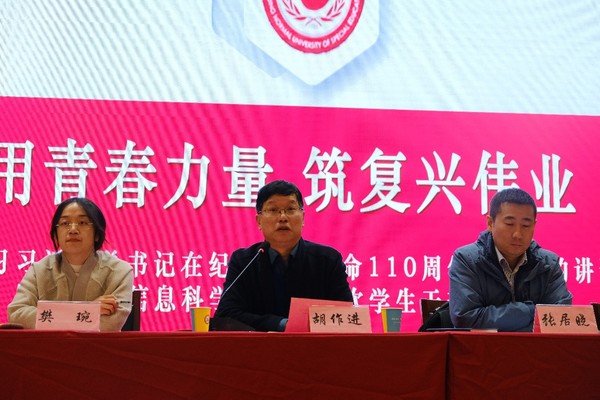 11月10日下午,威廉希尔体育在实验实训大楼报告厅召开学习习近平总书记在纪念辛亥革命110周年大会上的重要讲话精神专题学习会暨数学与信息科信公司员工干部大会,会议以“用青春力量,筑复兴伟业”为主题,经理胡作进、副经理张居晓、全体辅导员、员工党员及员工干部出席本次会议,会议由员工党支部书记樊琬主持。