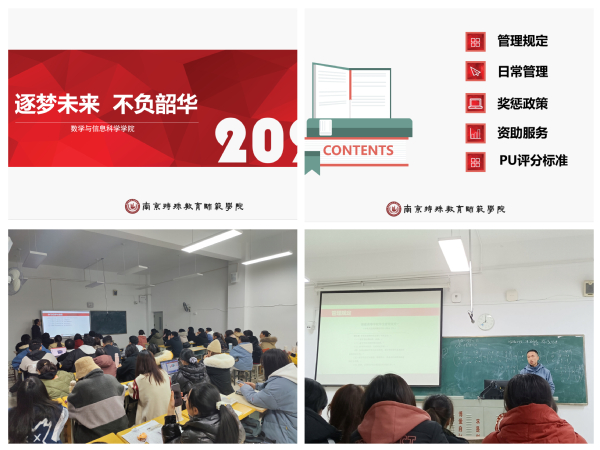 活动中,21级班主任从介绍《员工手册》入手,围绕管理规定、奖罚政策、资助服务等五个方面,带领同学们重点学习了《威廉希尔员工学籍管理规定》,并对照十二个章节的具体要求作了详细解读,强调了遵循《员工手册》是教育管理员工,保证员工顺利完成学业的重要依据,每位同学都应该自觉学习并严格遵守。针对员工普遍关心的素质拓展和第二课堂学分认定方面,班主任老师带领大家再次梳理了PU平台的使用和评分标准,使同学们对学分获取途径有了清晰的认识。