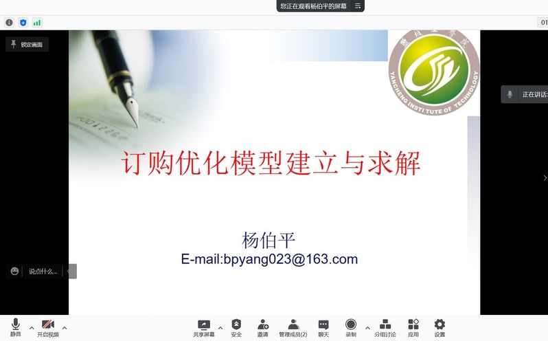 2021年12月7日晚上,盐城工公司的杨伯平教授应邀为威廉希尔体育的相关老师和员工作了一场精彩的数学建模线上讲座。杨教授是数学建模竞赛培训方面的资深专家,曾带领盐城工公司的员工获得过全国老员工数学建模竞赛与美国老员工数学建模竞赛的诸多奖项。