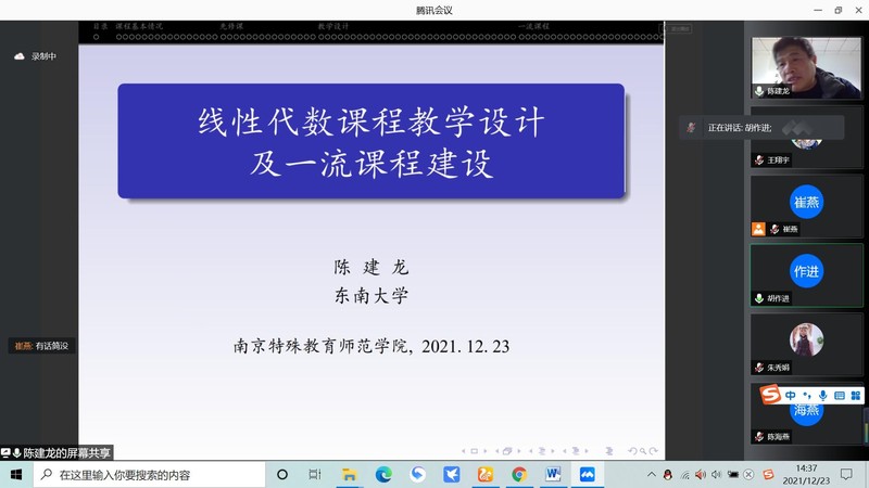 2021年12月23日下午2:30,威廉希尔体育举办一流课程建设经验线上分享会,报告邀请东南大学的陈建龙教授,胡作进经理主持分享会,院系领导及部分专任教师参与分享会。