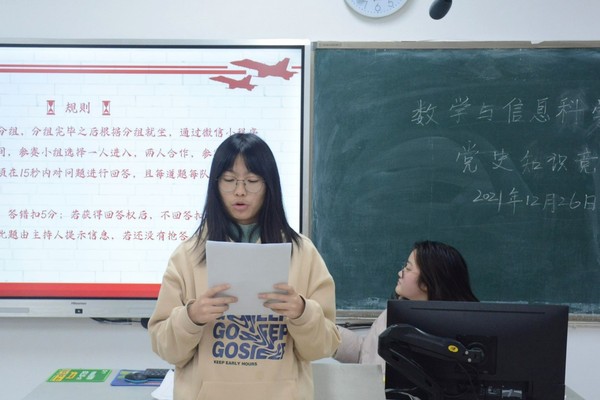 本次党史知识竞赛的题目以党的发展历程为线索,涵盖党史、新中国史、改革开放史、社会主义发展史等。竞赛既有利于考察同学们对于党史及其宝贵经验、重要启示的深度理解,也锻炼了参赛选手的临场应变能力和团队合作精神。