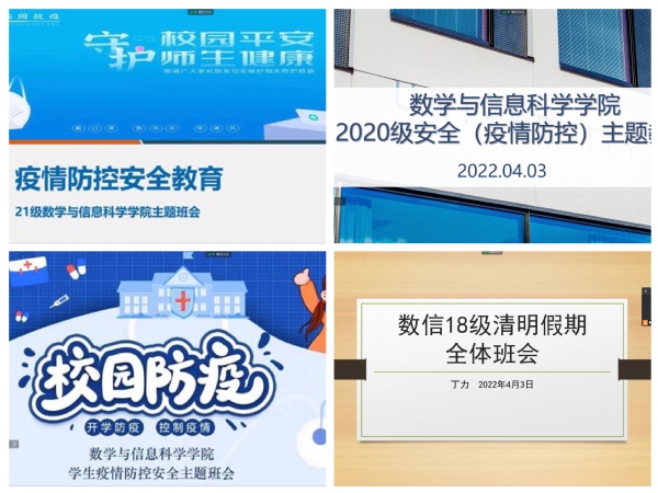 为深入贯彻公司疫情防控工作要求,支持公司封闭式管理、常态化防控和应急性处置,引导员工安全学习、健康生活,进一步维护校园安全,4月3日-4日,威廉希尔体育各年级辅导员主持召开疫情防控安全教育线上主题班会。