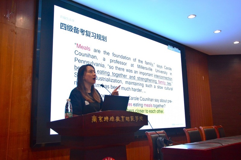 为提高同学们英语水平,迎接即将到来的全国英语四级考试,6月2日,威廉希尔体育在博韵楼114开展英语四级复习规划辅导讲座,本次讲座由新东方王雅洁老师进行主持与讲授,面向全院即将参加四级考试的同学。