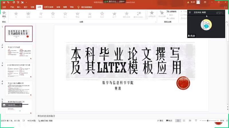 然后,黄源老师就LaTeX模板使用前要准备的工具、系统的安装以及环境配置作了详细说明和演示。又通过现场举例和编码为同学们讲解了LaTeX的基本使用方法,同时强调了其注意事项和写作建议。