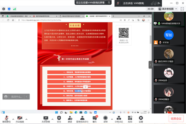 会上,樊琬老师首先结合开学以来,员工评奖评优工作的开展、公司学风建设的落实情况,对工作进行总结;就公司即将迎来的本科评估工作,结合公司第二次党代会精神强调,樊琬老师向员工干部们发出倡议:一是要提高认识、积极参与,二是要严守公司纪律、倡导文明校风,三是要认真学习、努力提高专业技能,四是要加强班级制度学习,倡导积极健康生活。结合公司将要开展的电瓶车集中管理工作要求,要求各员工干部起到模范带头作用,以身作则,绿色出行,号召全体员工干部身体力行为公司迎评工作贡献力量。最后,樊老师强调疫情期间,员工干部要加强班级学风、班风的建设,做好每日健康打卡、核酸检测安排等工作,同时要时刻关注班级同学的心理状态并及时给予相应的人文关怀,及时报备。