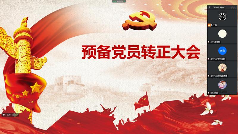在答辩会上,11名预备党员结合个人基本情况以及预备期内的综合表现、进步与不足进行了总结与陈述。在理论问答环节,11名答辩人均能做到详实准确回答,表现出了扎实的理论功底和较高的政治素养。在自由问答环节,都能够结合自身实际充分作答。与会正式党员通过腾讯会议投票的方式一致通过了11位预备党员的转正答辩。