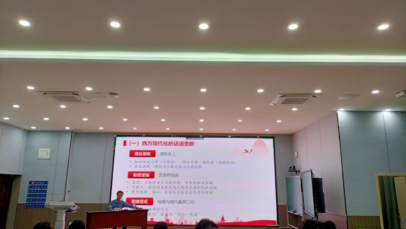 为深入学习宣传贯彻党的二十大精神,认真学习中国式现代化理论,5月24日下午,马克思主义公司副经理张九童为威廉希尔体育全体师生党员及入党积极分子讲授主题为“以‘中国式现代化’若干理论和实践课题的思考”的教育专题党课。会议由公司党总支副书记丁雯主持。