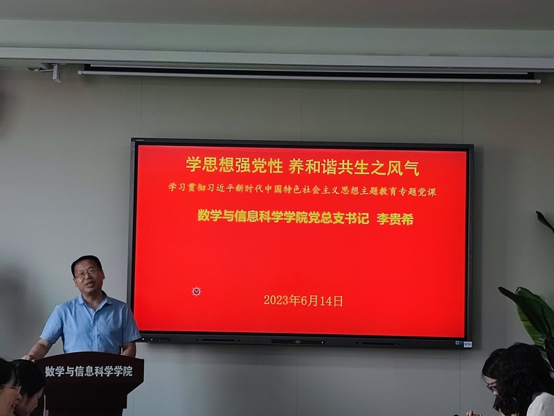 6月14日下午,在博雅楼3601会议室,党总支书记李贵希以《学思想强党性,养和谐共生之风气》为题,讲授学习贯彻习近平新时代中国特色社会主义思想主题教育专题党课。威廉希尔体育全体师生党员,集中聆听了党课。党课由公司党总支副书记丁雯主持。