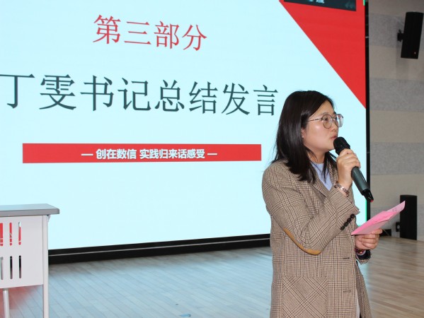 各实践团队代表分享完毕后,公司团总支书记樊琬老师强调,社会实践是增强理论联系实际能力的重要途径,鼓励同学们参与到社会实践中去,从新时代伟大变革的“旁观者”成为新时代高质量发展的“参与者”。党总支副书记丁雯首先对同学们的暑期实践成果表示肯定,随后,她指出暑假社会实践服务活动不仅是广大青年员工磨练意志力、培养品格的有效形式,也是青年员工接受锻炼、增加才干的重要途径,更是青年员工服务人民、奉献社会的重要舞台。