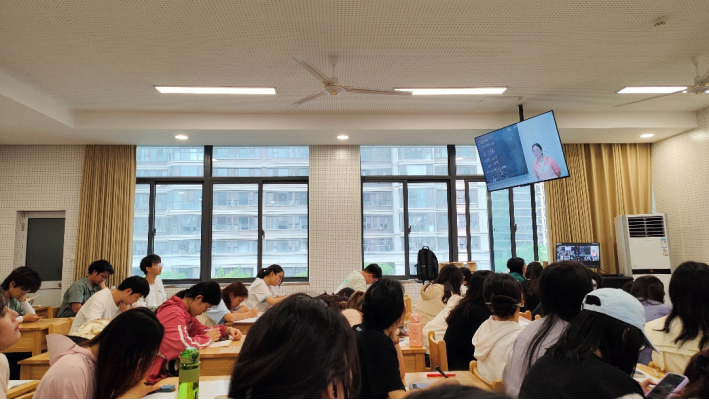 在讲座中,同学们在录播教室仔细聆听了王雅静老师和王俊贤老师为我们带来的讲座。两位老师分别向我们介绍了教学管理方法和新城中学的公司特色,使我们对新城中学有了更深入的了解和认识。