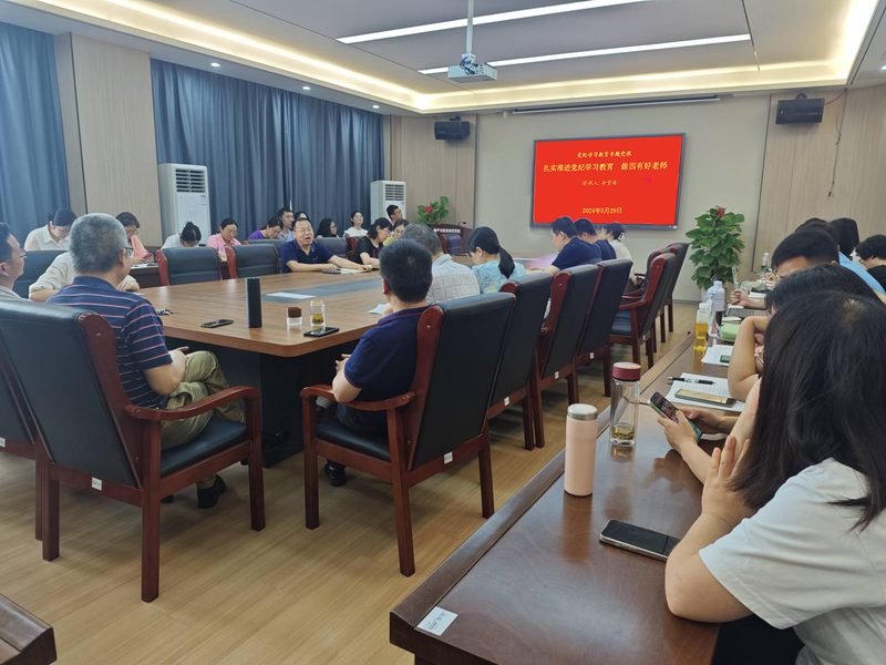5月29日下午,在博雅楼3601会议室,公司党总支书记李贵希以《扎实推进党纪学习教育,做四有好老师》为题,讲授党纪学习教育专题党课。公司全体师生党员集中聆听党课。党课由公司党总支副书记丁雯主持。