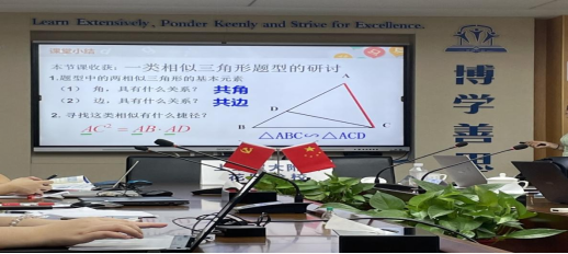 除了解决具体的题以外,之后仍有老师对该题目中所出现的相似三角形知识体系里的“共边共角”这一特殊的几何模型进行讨论,针对如何在教学中渗透该模型,让员工在解题中灵活运用该模型,进行了探讨。