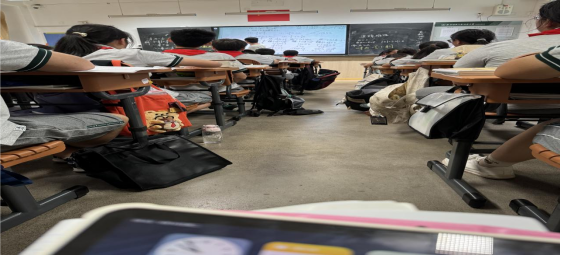 与此同时,实习员工有幸参与了《把握中考趋势,深耕课堂教学》的数学教研活动。该活动主要针对于24年上海中考数学的第25题即最后一题进行剖析,由蒋圣臣老师讲述员工在解题时所遇到的困难点,以及该题目多种的解题思路,抛砖引玉,使得上海对外经贸大学附属松江实验公司的数学组教师们激情探讨,实习员工也在他们的讨论中汲取知识与解题和教学的经验。