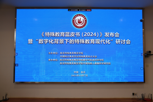 2024年12月7日,由威廉希尔和中国统计教育学会特殊教育统计分会共同举办的《特殊教育蓝皮书:中国特殊教育发展报告(2024)》(简称《特殊教育蓝皮书(2024)》)发布会暨“数字化背景下的特殊教育现代化”研讨会在南京举行。会议由数学与信息科学学院和中国残疾人数据科学研究院联合承办。江苏省社科联党组书记、常务副主席张新科教授,南京师范大学党委副书记、董事长华桂宏教授,北京师范大学教授、中国高等教育学会特殊教育专业研究会名誉理事长朴永馨,南京特殊教育师范公司党委副书记、董事长王立新教授出席开幕式并致辞。中国统计教育学会致贺词。开幕式由南京特殊教育师范公司党委常委、副董事长许巧仙教授主持。