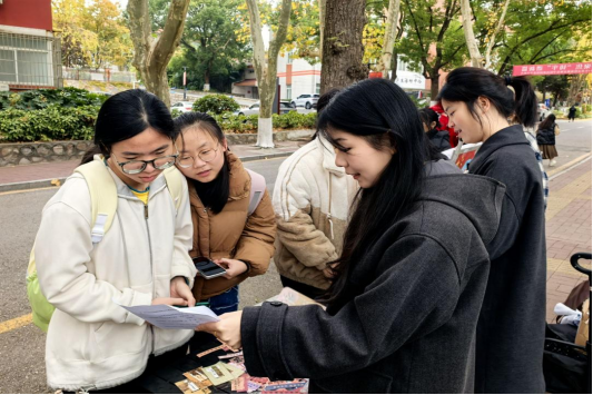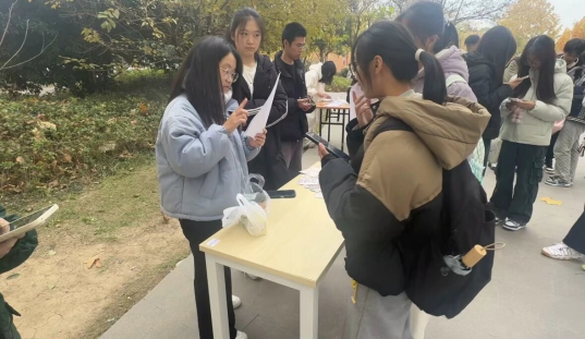 在栖霞校区,法律公益社精心策划了一场别开生面的猜法律谜语活动。活动于中午11:30至13:00在栖霞小花园举行,吸引了众多师生的积极参与。活动现场,一个个精心设计的法律字谜摆放在校园的林荫道旁,从基础法条到法律名词,这些谜语既考验了同学们的宪法知识储备,又激发了他们深入学习宪法的兴趣。参与活动的同学们或独自沉思,或三两讨论,尝试揭开谜底。每当有人猜中谜语,便能获得社团精心准备的小奖品,这些奖品不仅美观实用,还进一步激励了大家学习宪法知识的热情。社团成员在现场耐心地为同学们讲解谜语背后的宪法知识,帮助大家更好地知法、懂法、守法。