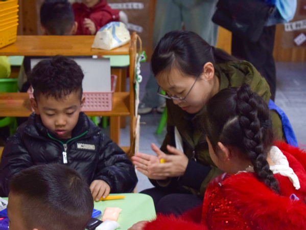 进入黏土创作环节,教室瞬间变成了五彩斑斓的创意工坊。志愿者们分组指导孩子们运用超轻粘土创作“雷锋帽”“小红花”等特色作品。面对孩子们捏出的千奇百怪的形状,志愿者们在耐心指导的同时,更注重保护孩子们的创作热情。经过近一小时的精心制作,一件件充满童趣的手工作品新鲜出炉,现场洋溢着欢乐的笑声。