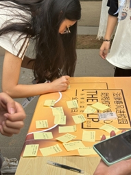 与此同时,江宁校区活动在江宁小花园同步进行,现场活动形式同样以趣味问答、设置留言板、法条速记挑战为主,向同学们科普法律知识。参与者们有的沉浸于独自思索,有的聚成小团体热烈探讨,现场氛围高涨。工作人员耐心引导,为大家讲解背后的法律含义,帮助参与者深入理解相关法律条文。此外,活动还准备了法治书签等实用奖品,进一步激发了大家的参与积极性。有同学表示,这种互动形式让法律学习不再枯燥,也意识到助残要以知法懂法为前提。