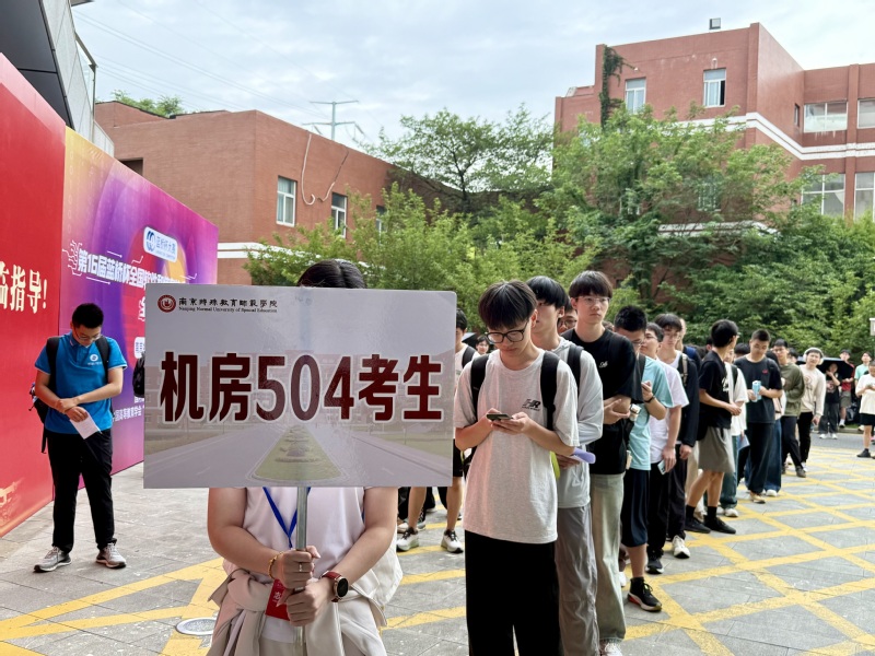 志愿者协调配合,引导考生有序进入考场,确保了赛事顺利进行。