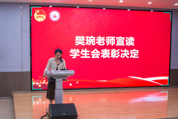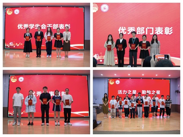 会议伊始,樊琬老师宣读了本学年员工会表彰决定,对表现突出的部门、干部及干事予以嘉奖。在热烈的掌声中,丁雯书记为秘书部、青年志愿者部、宣传部、文体部四个部门颁发荣誉证书;樊琬老师为优秀员工干部颁奖;张国盛、丁力两位老师分别为“优秀干事”获奖者颁奖;朱思橙、李昀熹两位老师为荣获“活力之星”“勤勉之星”称号的同学授予荣誉。
